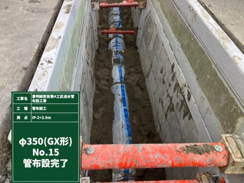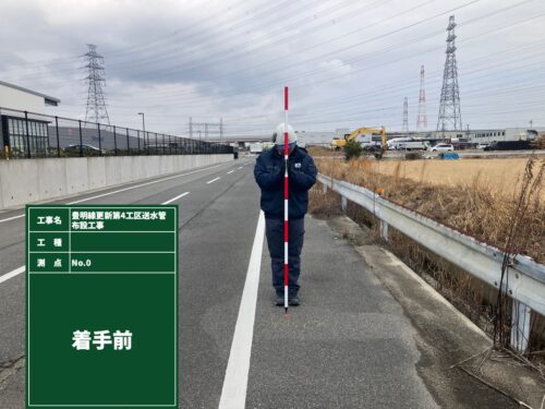 2025.03.20 豊明線更新第4工区送水管布設工事 工事内容 工事名 豊明線更新第4工区送水管布設工事 工種 土木 工事場所 愛知県豊明市栄町地内 発注者 愛知県企業庁愛知用水水道事務所様 契約工期 令和6年12月27日~令和7年3月19日 工事概要 布設工事(管材及び接合を含む)GX形ダクタイル鋳鉄管Φ350㎜ L=72.8m うち開削工法 L=72.8m 空気弁室工 2か所 NEXT BACK